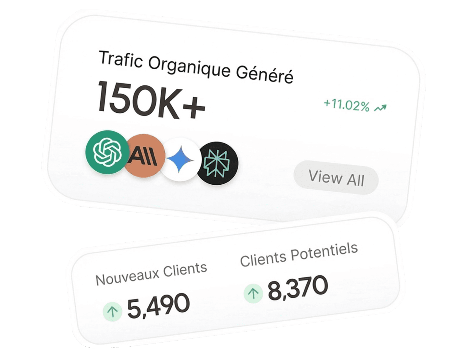 Apparaissez là où vos clients idéaux cherchent des solutions. Notre système automatisé rend votre marque visible sur ChatGPT, Google, Claude, Perplexity et toutes les plateformes d'IA.