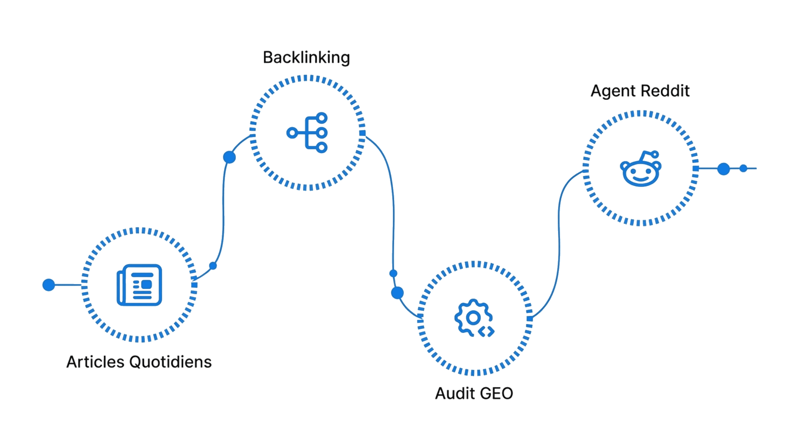 Tout fonctionne automatiquement : contenu, publication, backlinks. Le trafic organique commence enfin à se cumuler, sans recruter ni gérer qui que ce soit. C’est comme ça que le SEO devrait fonctionner aujourd’hui.